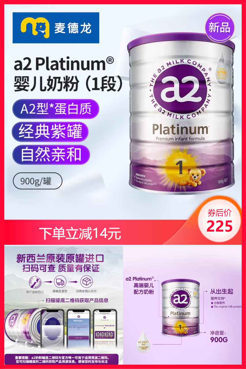 麦德龙A2紫白金奶粉,专享新西兰产,护肠力MAX,营养全面升级!满载:A2蛋白,助长智脑力。一键解锁官方热线,解答疑问!适合6-12月宝贝喝~