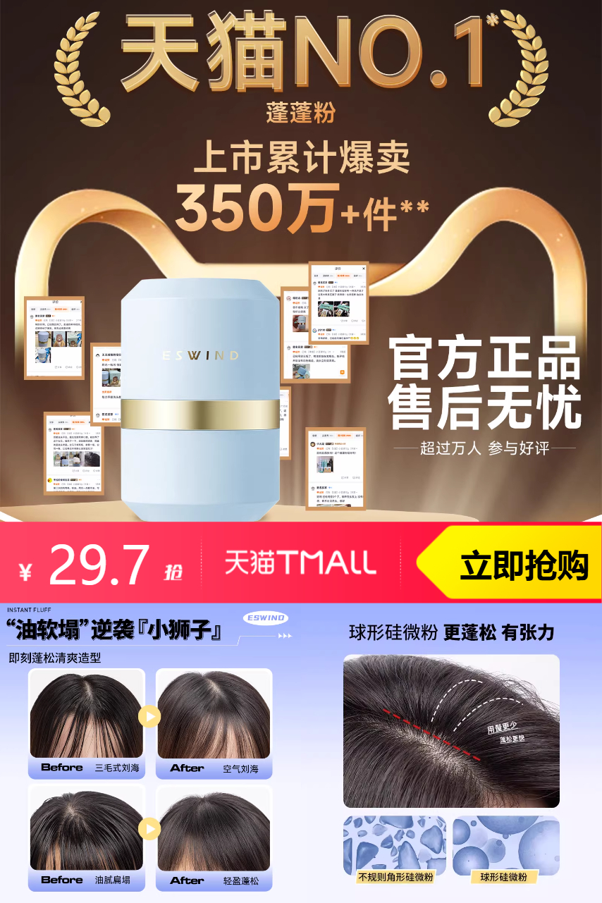 【pz到30%,官方立减7.2,领券减23,淘金币抵扣3.28,叠消费券最终到手仅,23.4元;如果有店铺无门槛到手价更低】10g伊风蓬蓬粉头发控油蓬松粉油头神器让秀发重获轻盈感,快速显型。细致粉末,均匀附着每根发丝。无限蓬松,随心拍拍无惧油!