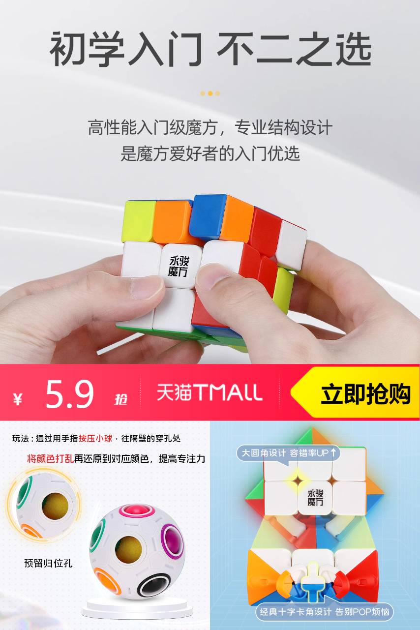 推荐:永骏魔方三阶3阶儿童益智玩具初学者套装