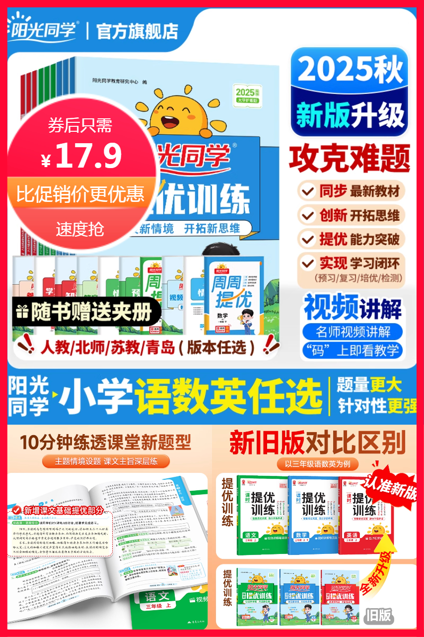 【赠夹册】阳光同学课时提优思维训练,创新情境训练,激活高阶思维,习作天天练,突破语文难点,增设奥数演练场,锤炼思维拉分差,扫码视频讲解,开启学习新体验!强基提优双赢,助力学霸养成!