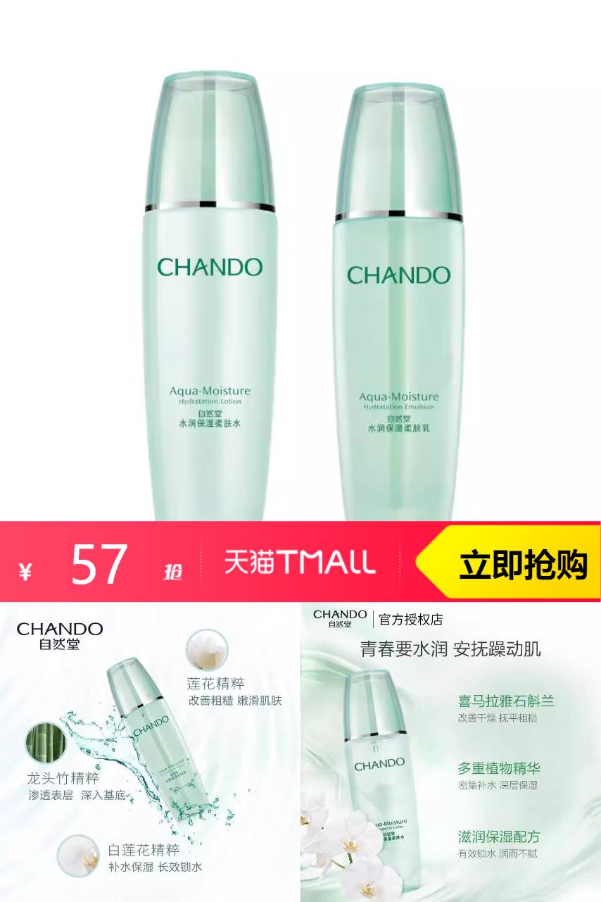 【每天10点开始下拉详情页下单,页面价99-优惠券8-立减34元-淘礼金6.7元-淘金币0.99=49.31元,88vip95折到手46.46元。】自然堂水润系列护肤套装爽肤水乳液面膜,改善粗糙,嫩滑肌肤~