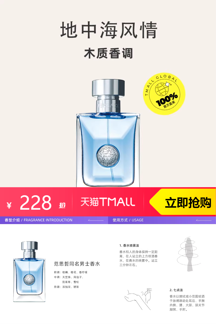 百亿补贴范思哲经典同名男士淡香水50ml,木质香调,优雅持久。50ml精致容量,适合日常及商务场合,是送礼或自用的不二之选!天猫国际直供