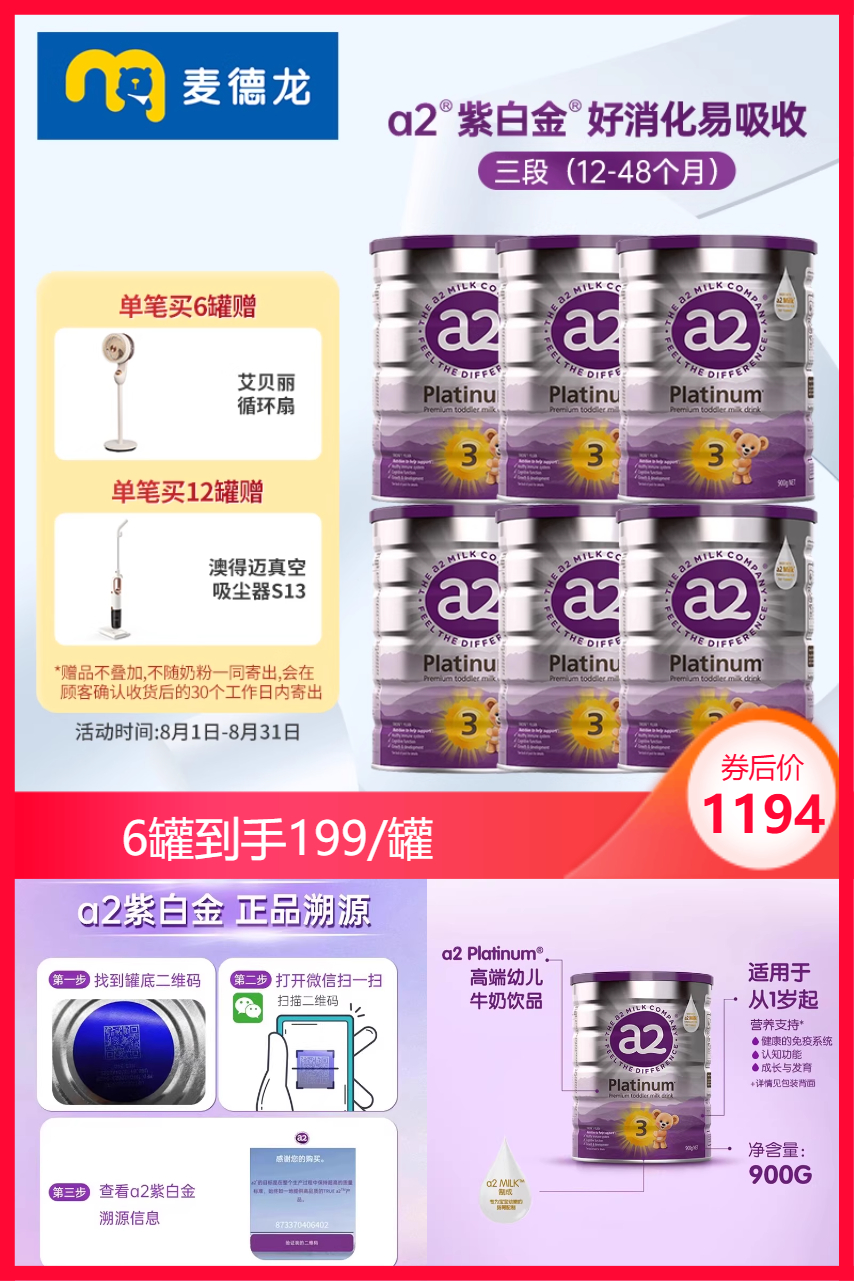 【付定金100,6罐到手199/罐】麦德龙A2紫白金奶粉,专享新西兰产,护肠力MAX,营养全面升级!满载:A2蛋白,助长智脑力。一键解锁官方热线,解答疑问!适合12-48个月宝贝喝