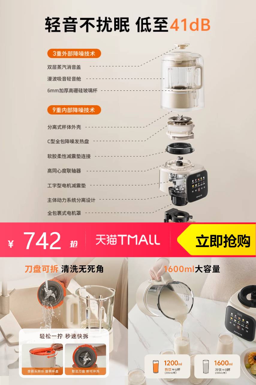 【领190券+消费券+国补到手422.28】九阳破壁机可拆洗家用全自动豆浆机,可拆清洗更彻底,轻音低噪更细腻~