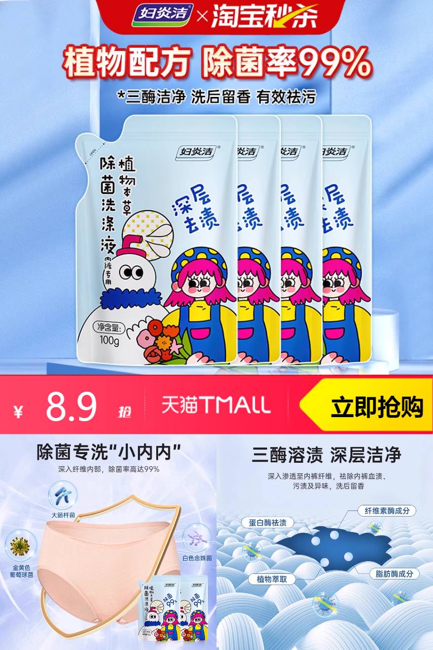 【立减20元,补贴0.9元到手8元。补贴500单。】专用洗内衣裤,天然植物提取物,温和不刺激,99%杀菌抑菌,深层清洁,去异味,抑菌祛渍,姨妈期的血渍不再怕,大人小孩内衣内裤都能用,超划算哦!