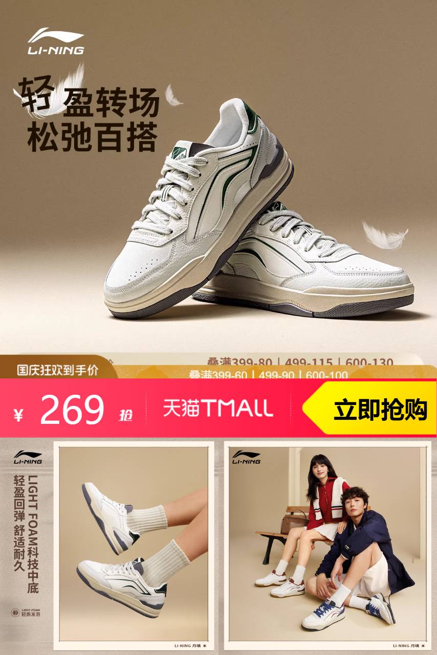 【限时抢购到手仅需269,可以叠加淘金币】李宁月璃板鞋,秋季新风尚,舒适小白鞋!品质保证,时尚与舒适并存!真心推荐,休闲鞋好选择!抓住优惠,一起升级鞋柜吧!