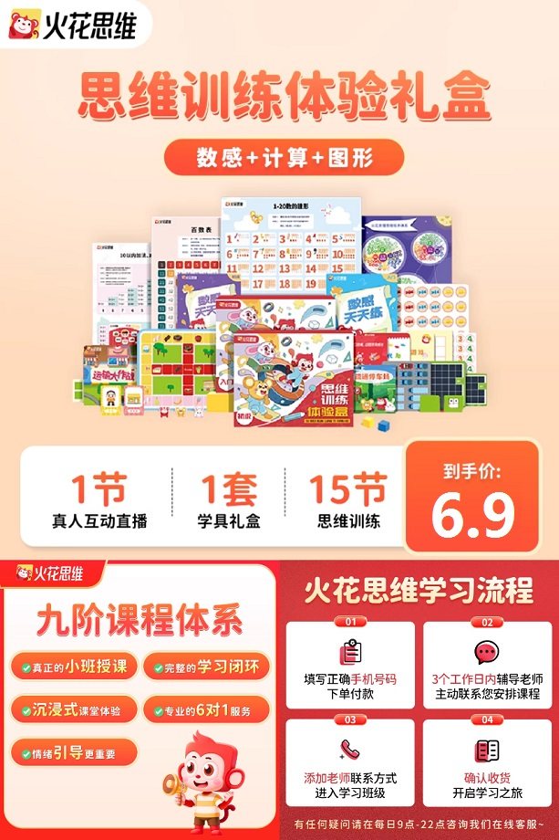 思维训练体验礼盒,数感+计算+图形。九阶课程体系,真正的小班授课,沉浸式课堂体验,完整的学习闭环,专.业的6对1服务,情绪引导更重要