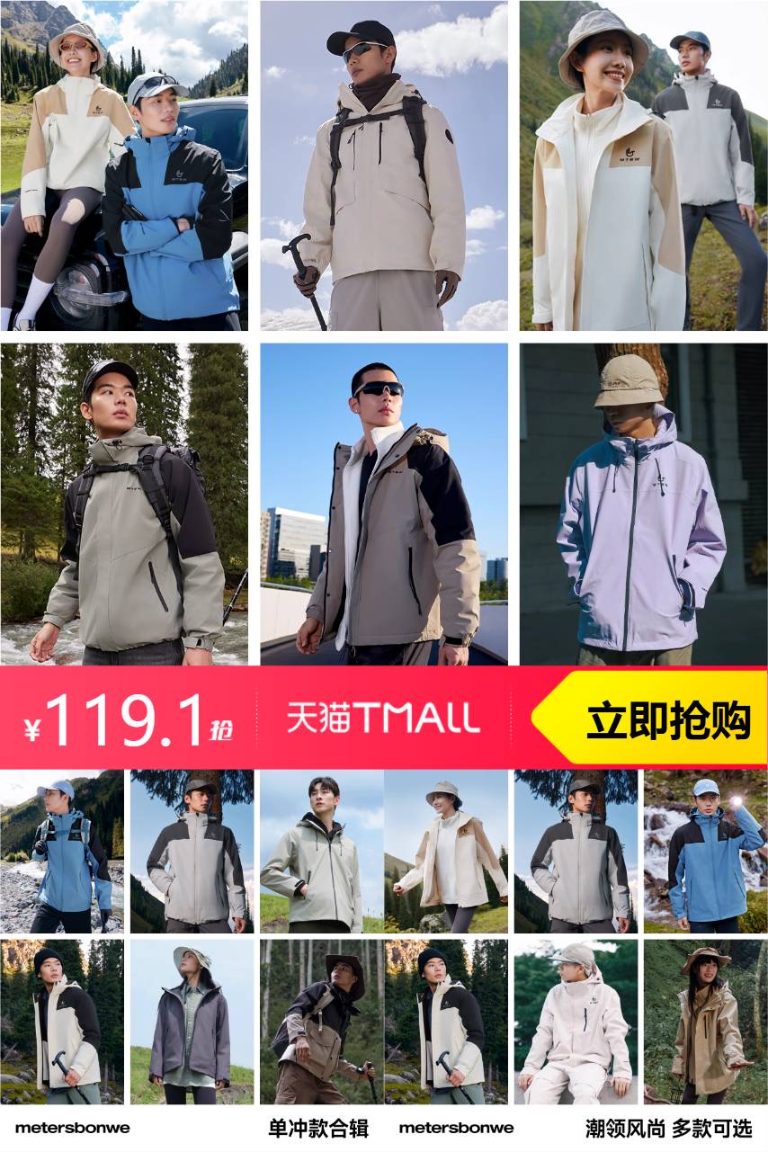 【立减60+淘礼金13.9+淘金币6+降温券抵扣20+消费券抵扣14到手85.1】【林系列】美特斯邦威2025新款冲锋衣,全衣可调节系统 用细节守护你~