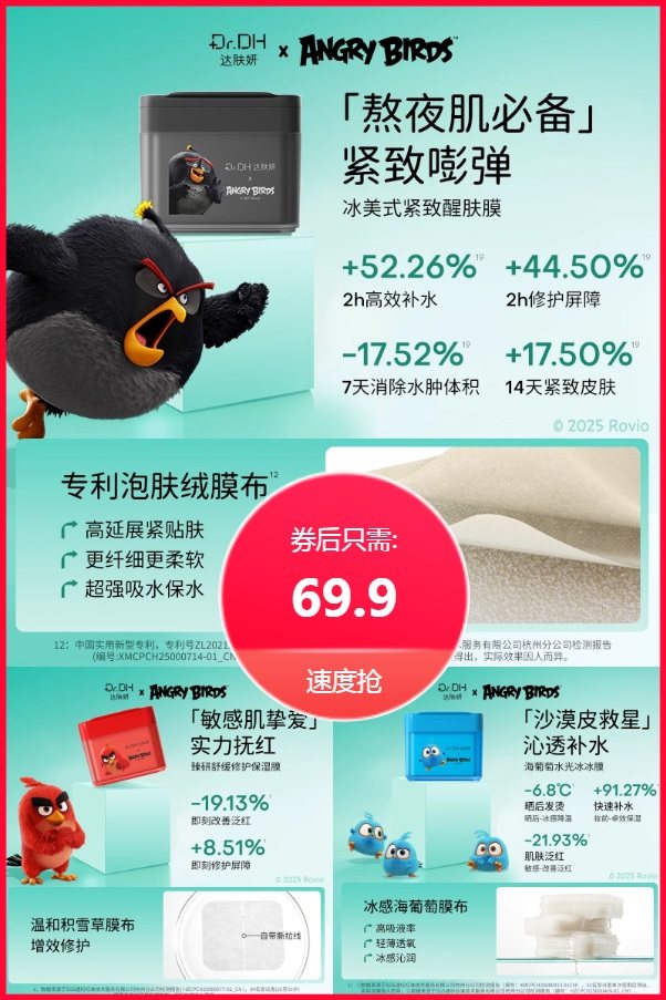 达肤妍速修棉片系列,,针对肌肤困扰,提供定制化护理!3分钟速修红敏,敏敏肌也能安稳换季!SGS权威机构检测,快速补水,沁润降燥!