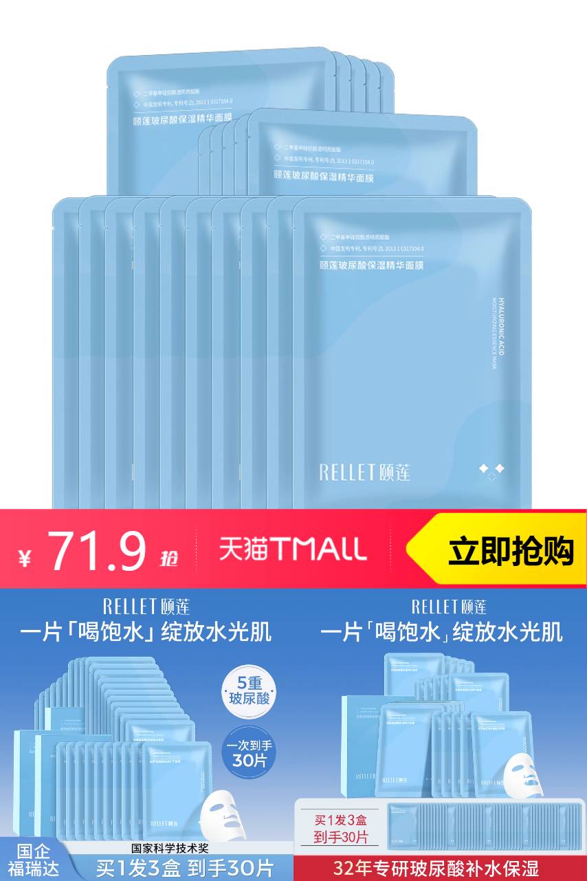 【下拉详情页百补,上午十点领金刚券,叠淘金币抵10元,到手54元,折合1.8元/片】专利植物玻尿酸500倍吸水力锁水保湿双保障,精研配比5重玻尿酸,层层充盈灌满水润能量!一片巨补水肌肤水吨吨!