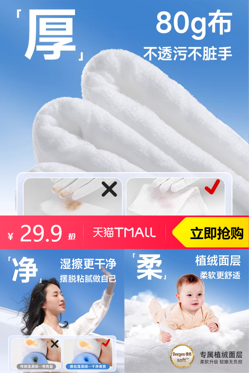 【叠加淘金币0.7元+凑单消费券200-25=到手仅需25.55元】德佑金盏花湿厕纸家庭实惠装女士专用,湿厕巾厕纸湿巾。