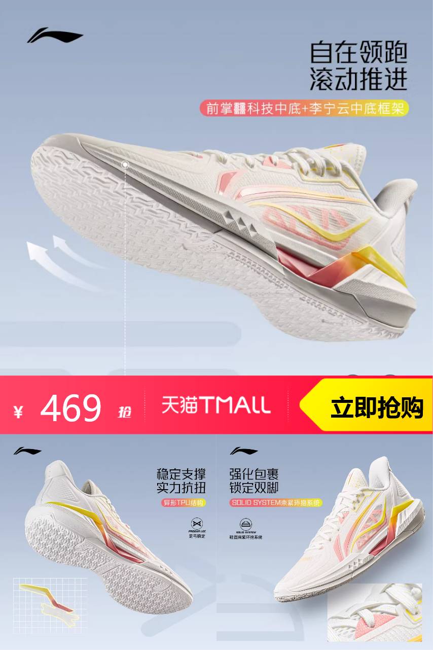 【可叠李宁大额券1000-170,消费9折券,9.4折购物金后到手214元左右;得物290元起】低帮设计,舒适不拖沓,篮球场上的风驰电掣!