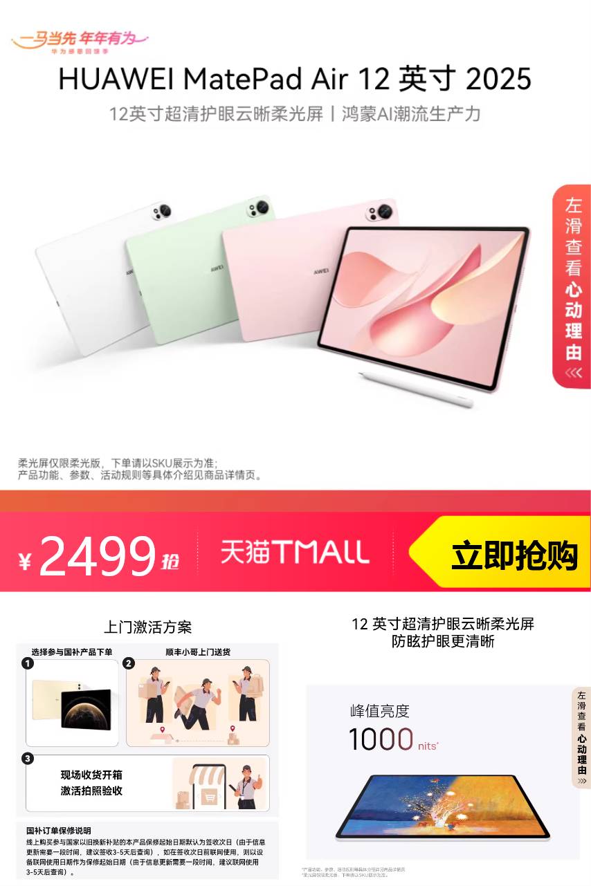 【原价2799-会员券20-立减优惠300-淘金币136.68-国补15%=1990.97!支持以旧换新】惊艳你的视野!它不仅仅是一款平板,更是一次技术的革新
