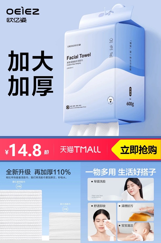 【立减19.8元】AB双面,双重呵护,一面清洁一面护肤,一巾双效,满足不同需求。全新升级 再加厚110%,相比市场普通洗脸巾,我们将洗脸巾更加厚实,秒吸水。