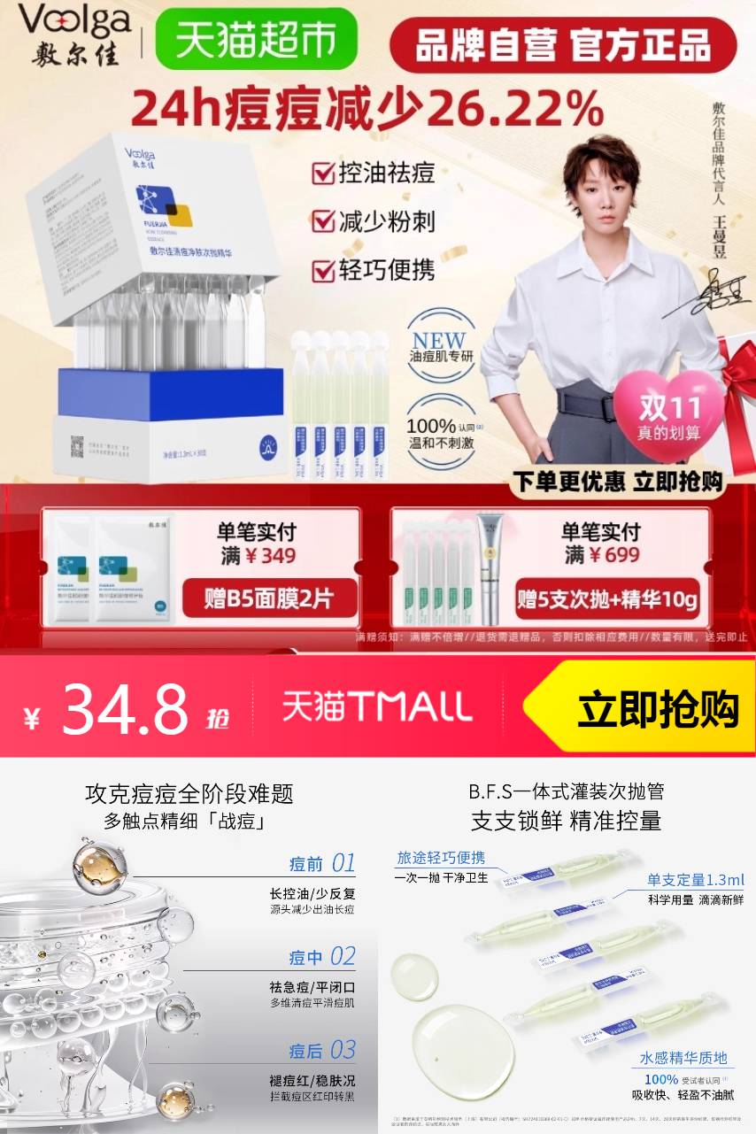 【叠加金币1.69,首单2块,88vip后28】敷尔佳,肌肤的“隐形医生”!天然成分,轻轻松松祛痘!30支次抛精华,一瓶多用,洁净又清透! 功效卓越,战痘的得力助手!让你的肌肤从此光滑无瑕,触手可及!