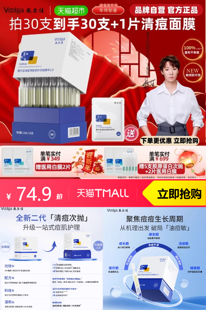 【原价158-立减78.4-优惠券5-淘金币3.58-88vip2.84-88消费券5.72-凑单平台购物券(99-10)=44.56 平均一盒(10只22.28,2.8/只)】敷尔佳清痘净肤次抛10支精华,肌肤的“隐形医生”!天然成分,轻轻松松祛痘!30支次抛精华,一瓶多用,洁净又清透! 功效卓越,战痘的得力助手!让你的肌肤从此光滑无瑕,触手可及!