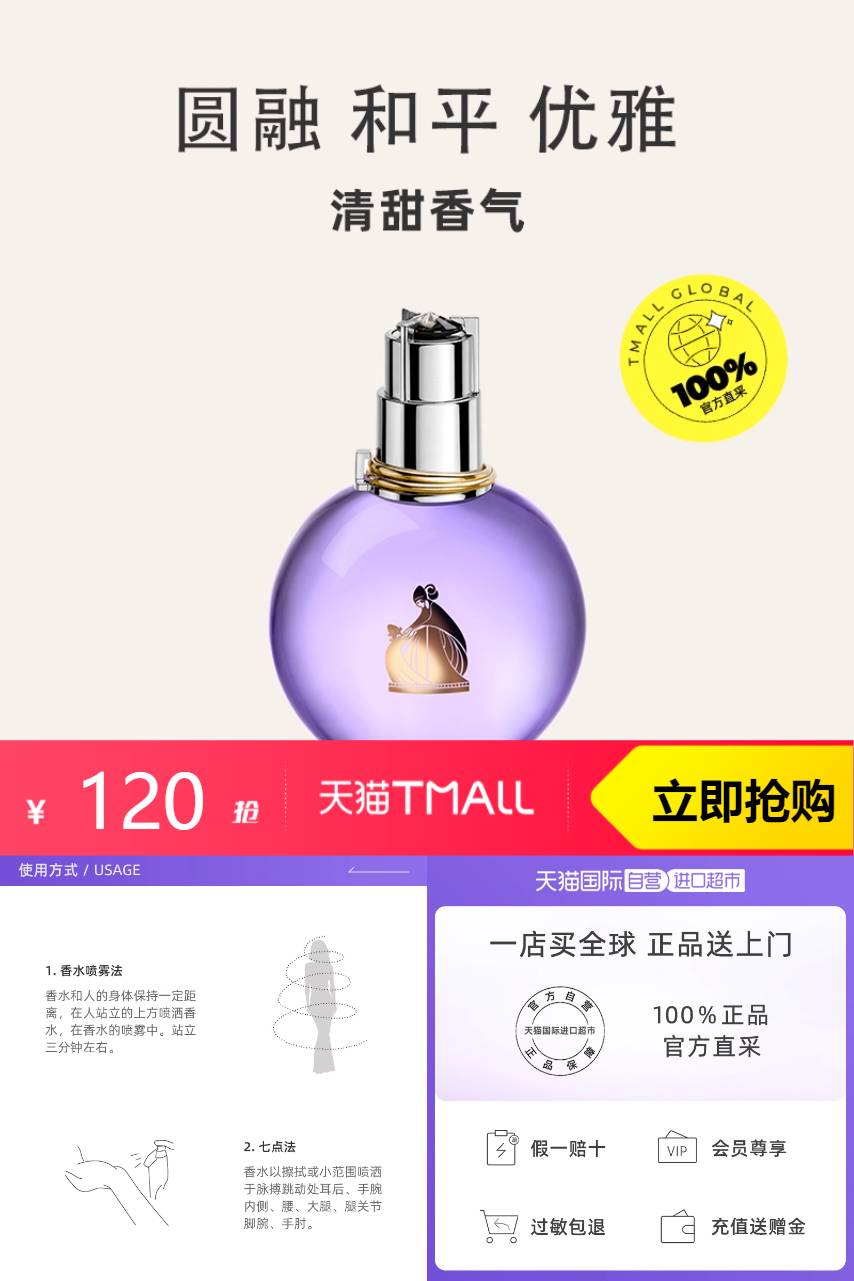 【88vip减6元,淘金币抵扣11.09,到手102.91元。凑单消费券160-20到手仅需90.04】礼物浪凡光韵女士香水紫灯泡30ml,浪凡香水不仅仅是简单的香水,更是一种快乐心态和对诗意的生活愿景的肯定。她们的轻盈是巴黎人的时尚。