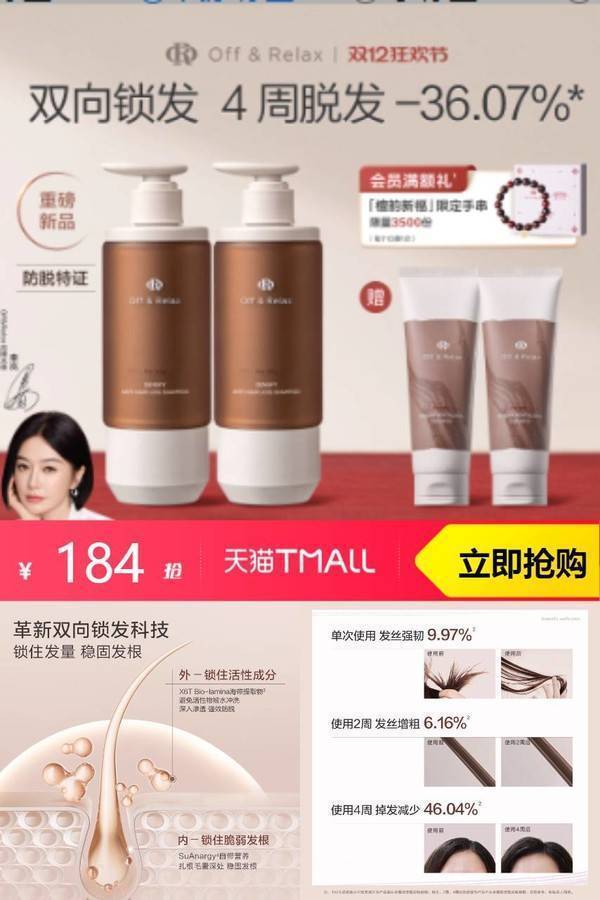 【有;凑淘金币+消费券到手更低】OffRelax防脱锁发瓶洗发水蓬松丰盈,革新双向锁发科技,锁住发量 稳固发根~