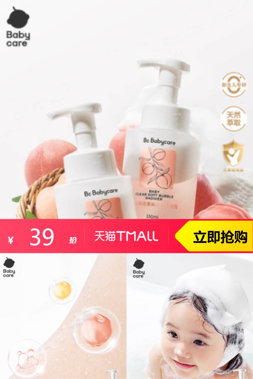 【淘金币抵扣2元,到手价37元】babycare儿童沐浴露洗发水二合一~亲肤爽滑,洗出水嫩~温润配方新生儿可用!