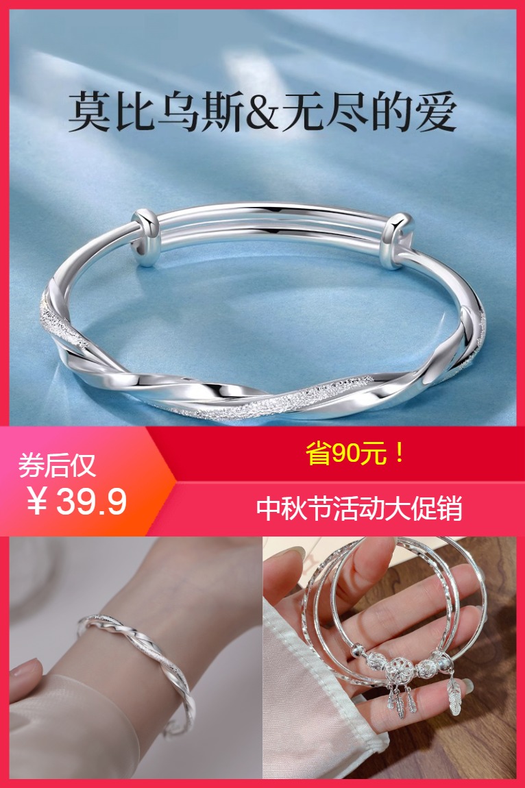 中秋节活动!送女友s999莫比乌斯银手镯【券后价】39.9元【多款式选择】柔和触感,简约素雅,气质百搭百里挑一,多款主题,展现女性独有的高雅与魅力。打造生活中每个浪漫仪式感!