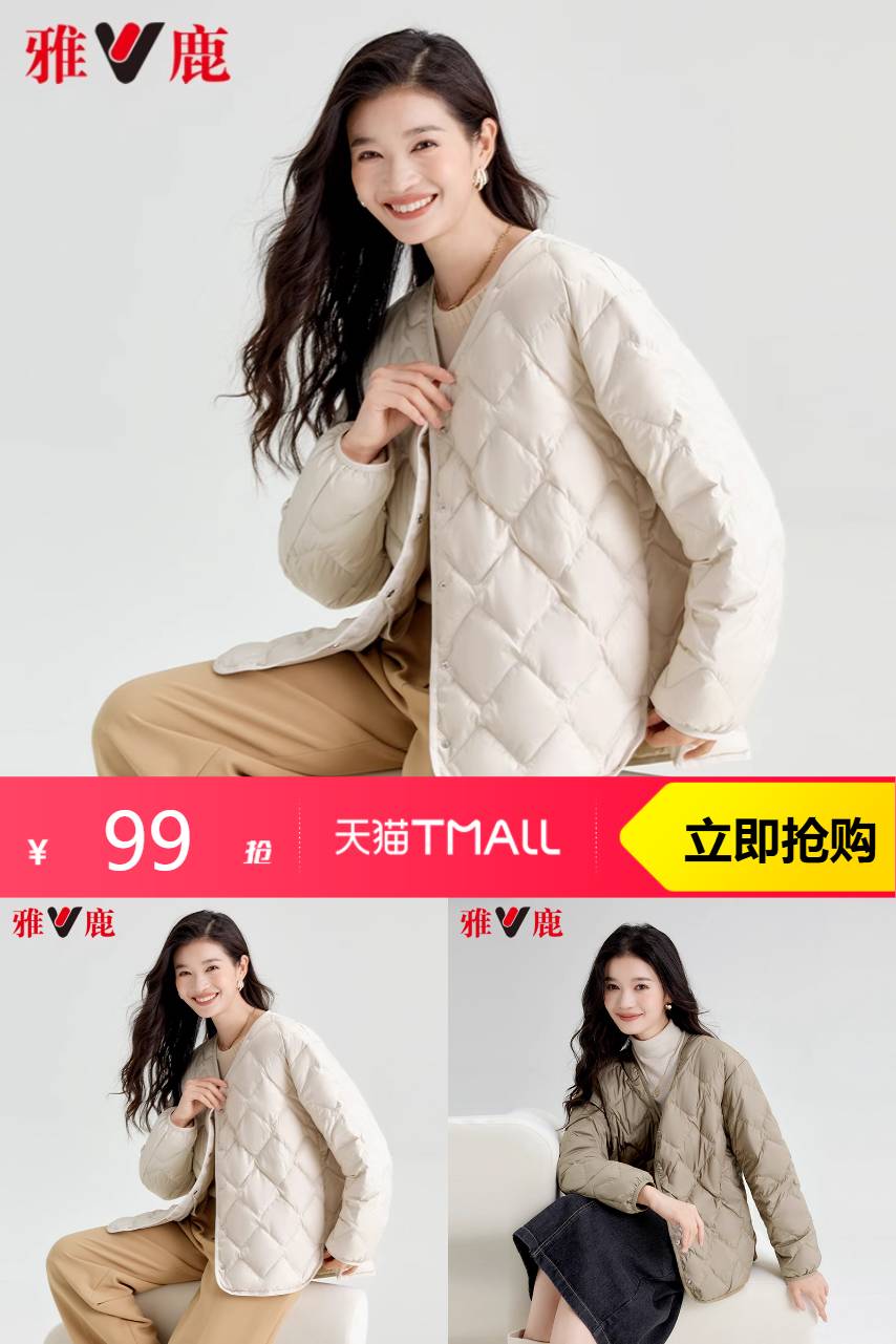 ⭕雅鹿轻薄羽绒服时尚短款休闲保暖菱形格外套