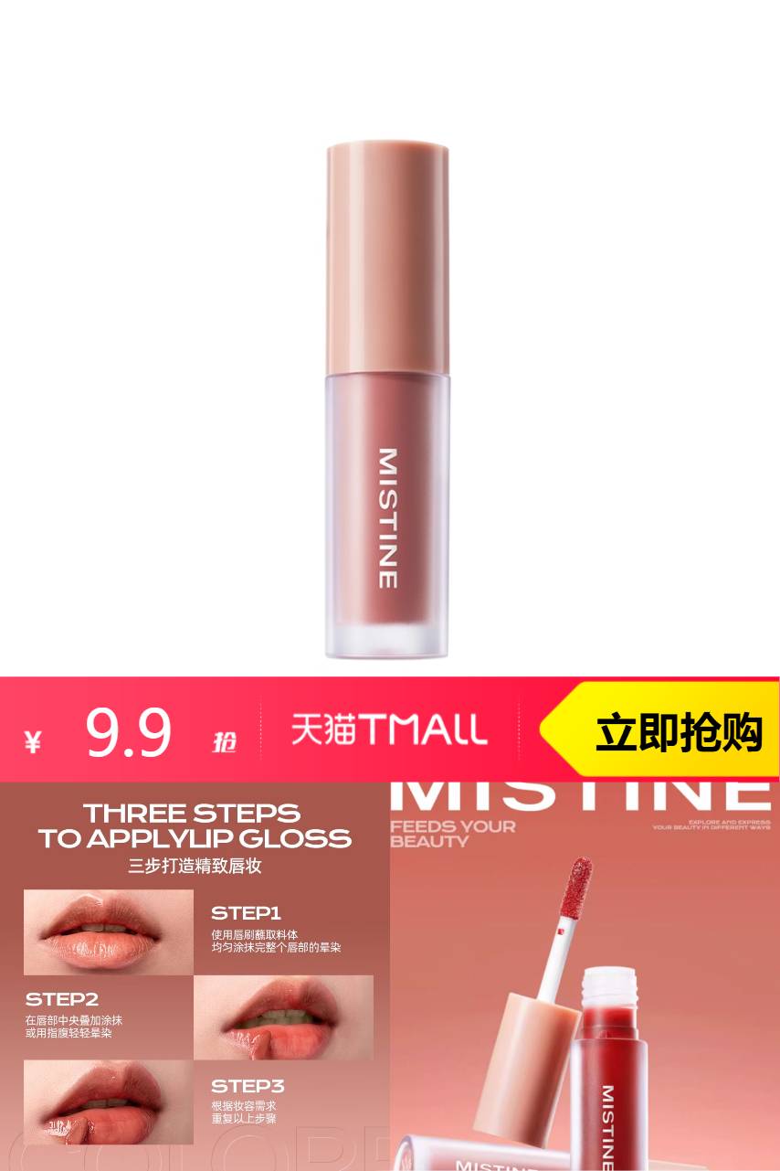 【可抵扣淘金币0.39元,88vip到手9.01】Mistine蜜丝婷水光唇釉1.3g,唇冻质地,复合软膜清透顺滑高折光成分亮泽持光~