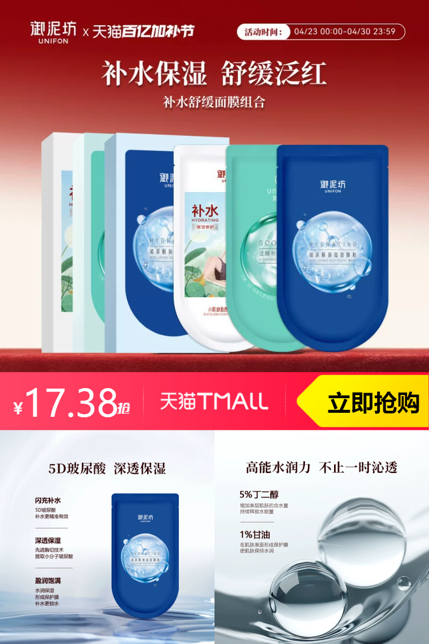 【百补到手+5.38淘金币到手17.38!直接入手15片面膜,1.1/片】三效合一深层补水,5D玻尿酸技术锁水力强,日常保湿好帮手,性价比超高!