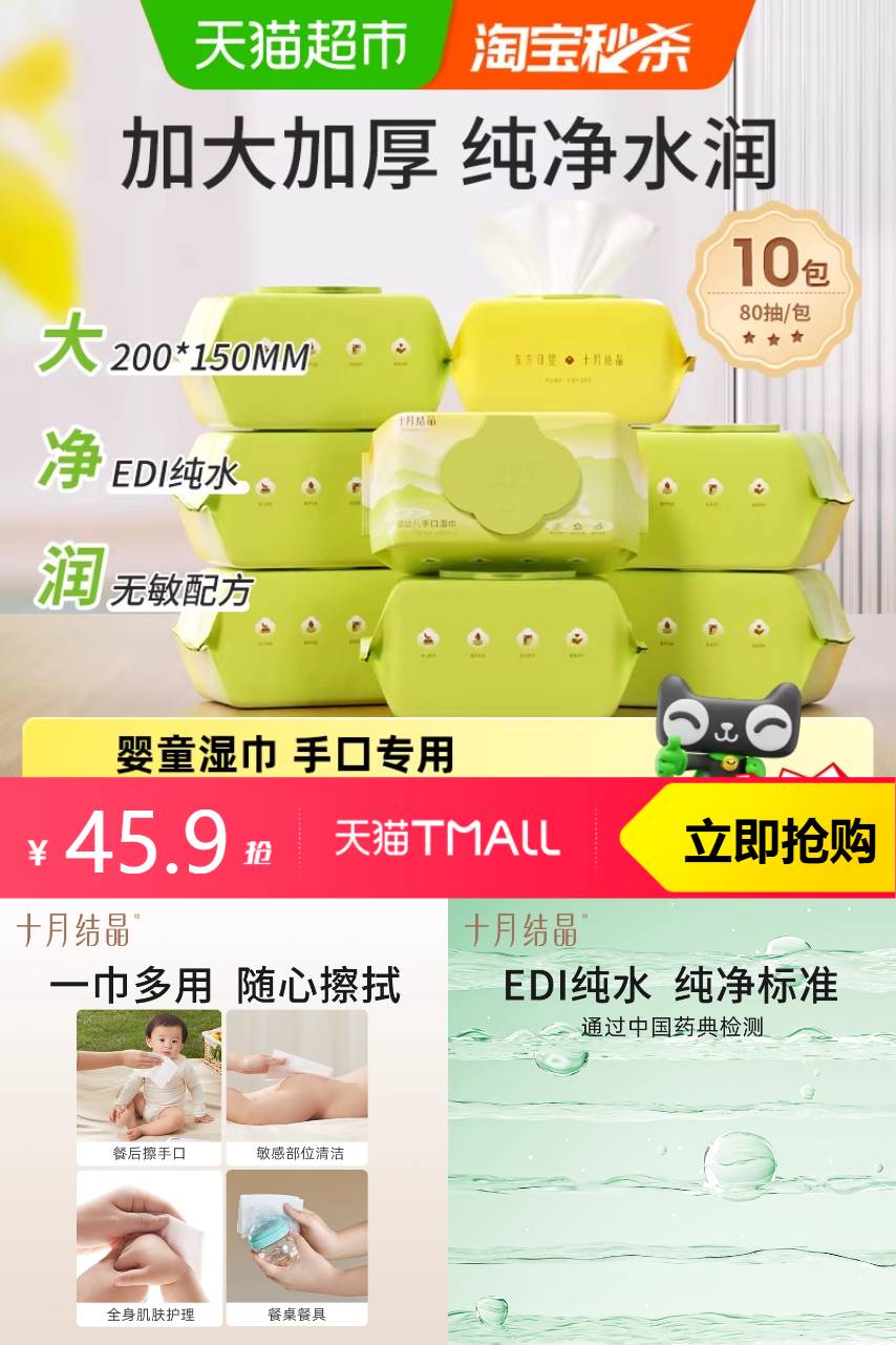 推荐:十月结晶新生婴儿手口湿巾纸80抽*10包