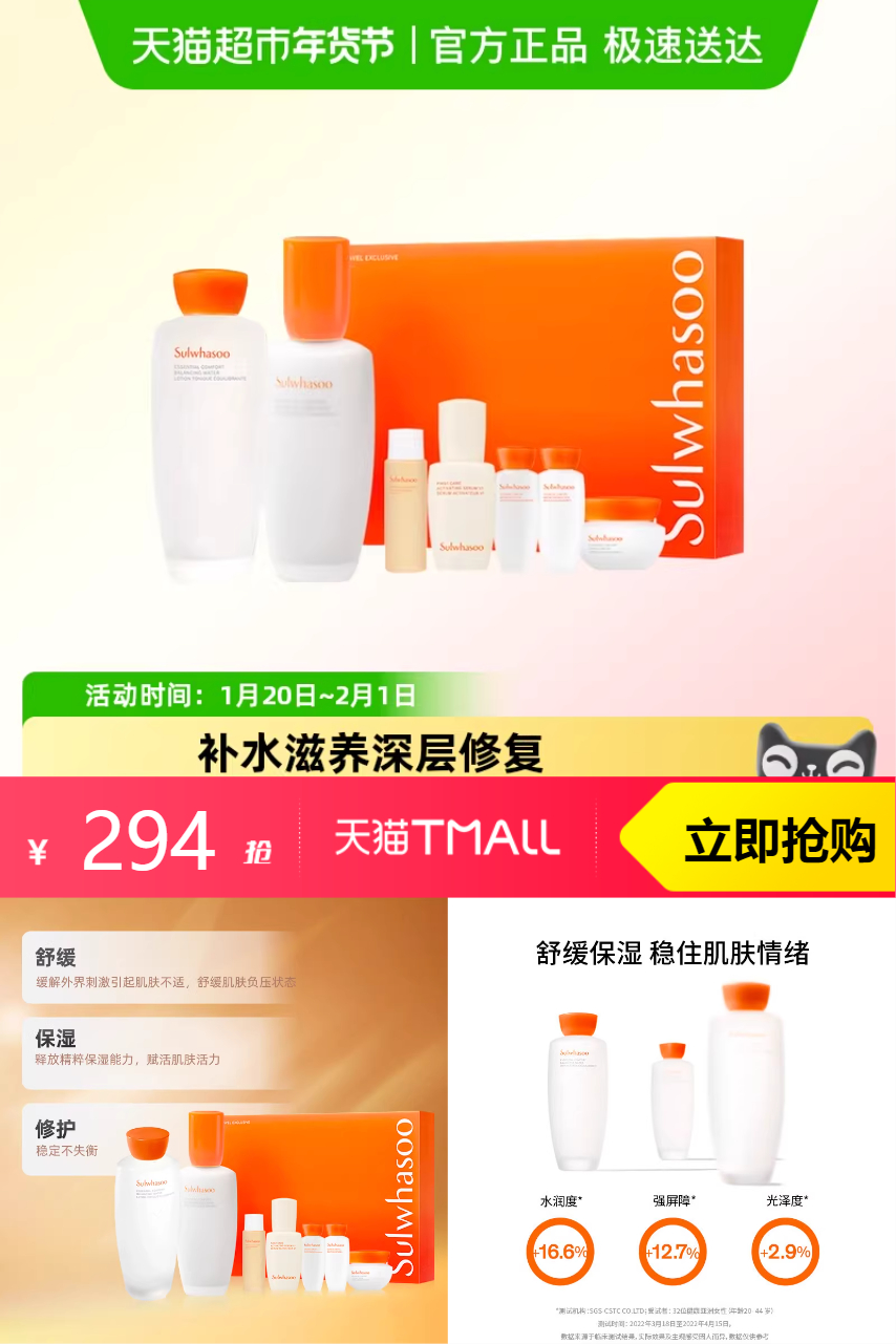 【原价420-品类券20-官方立减105-88vip13.7-店铺优惠21-淘金币抵扣19.98-红包32-消费券凑单抵扣8.16=到手200.16元】雪花秀滋盈舒活水乳套盒焕新升级,蕴含多重草本精萃,帮助改善肌肤干燥与粗糙,提升肌肤柔润度与光泽感。水乳搭配使用,质地轻盈易吸收,适合多种肤质日常护理。礼盒装分量充足,自用贴心,送礼体面,是焕亮肌肤状态的优选组合。