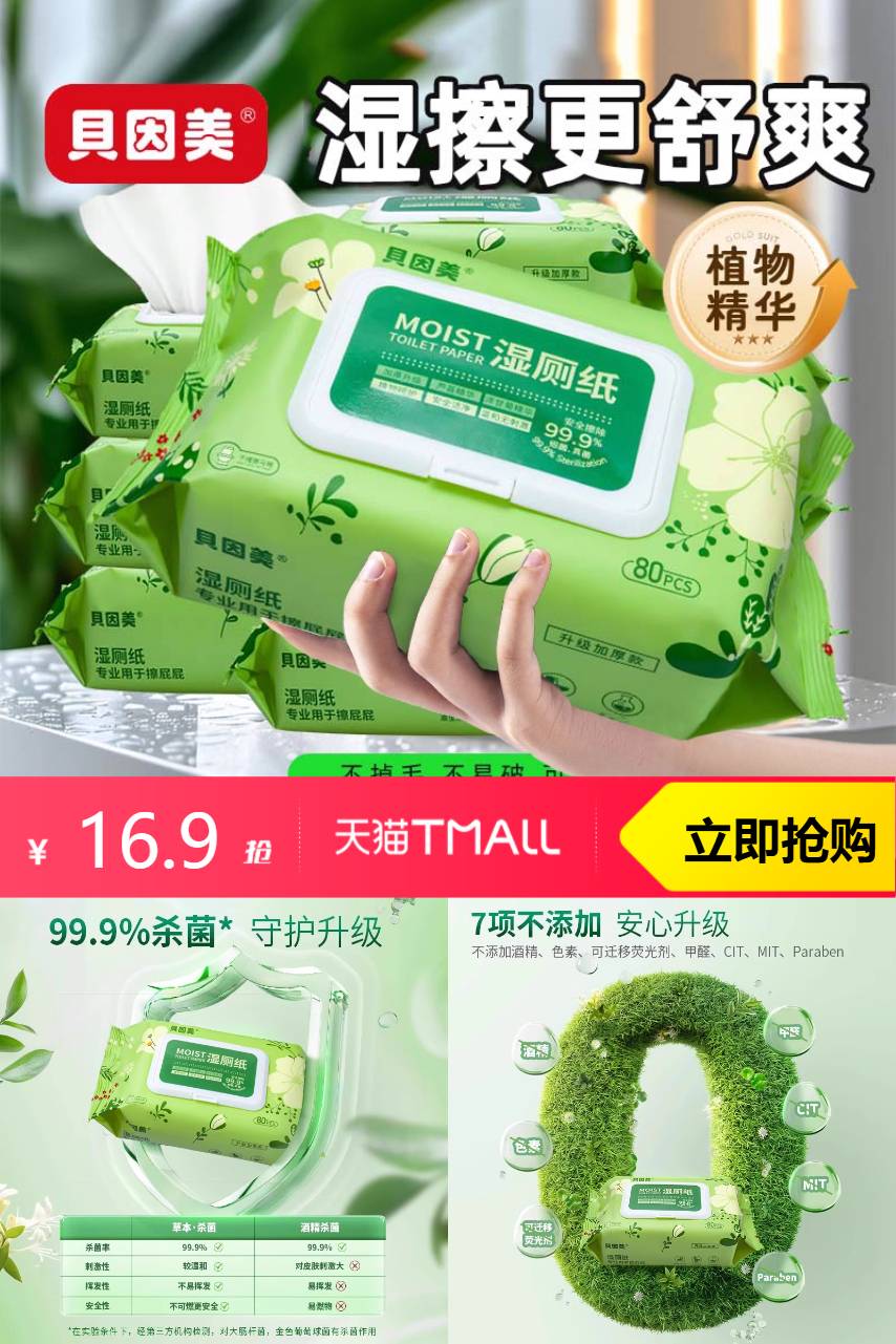 ⭕拍5件!贝因美湿厕纸大包实惠装80抽*5