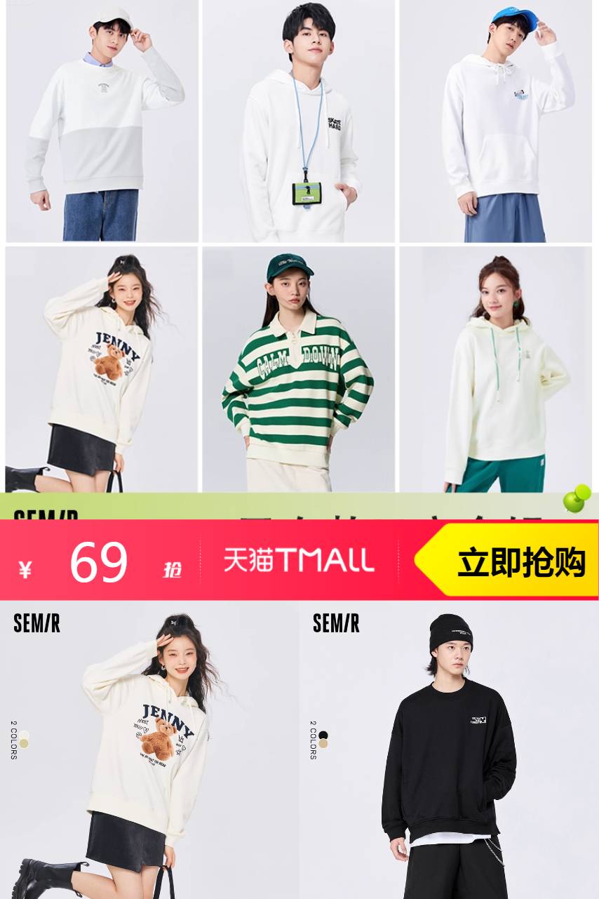 ⭕拍2森马男女春秋款黑色圆领针织情侣卫衣