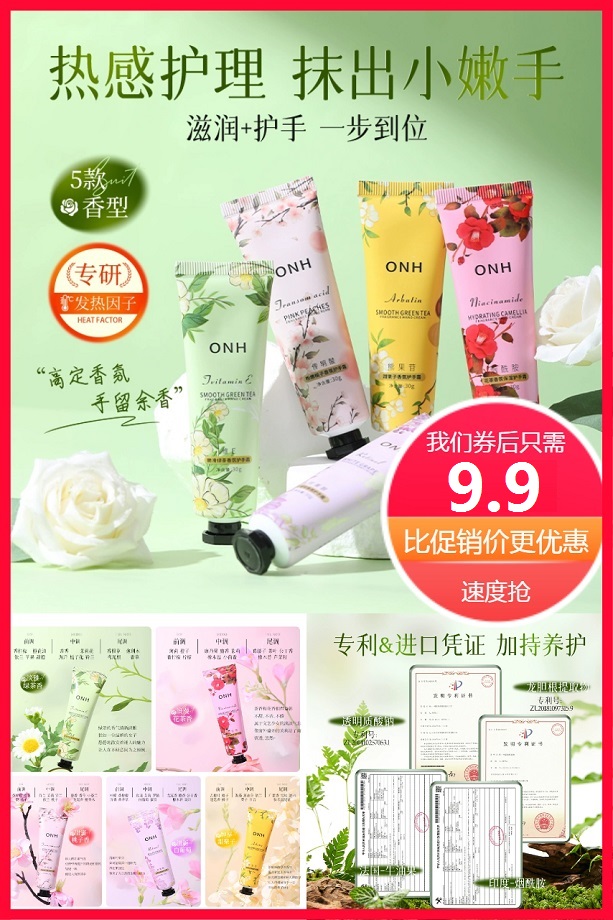 5款香型,热感护理,抹出小嫩手。烟酰胺+熊果苷靓肤成分,淡纹路提靓嫩肤。补水保湿,多重进口保湿精华,深入滋养双手。滋润+护手,一步到位!