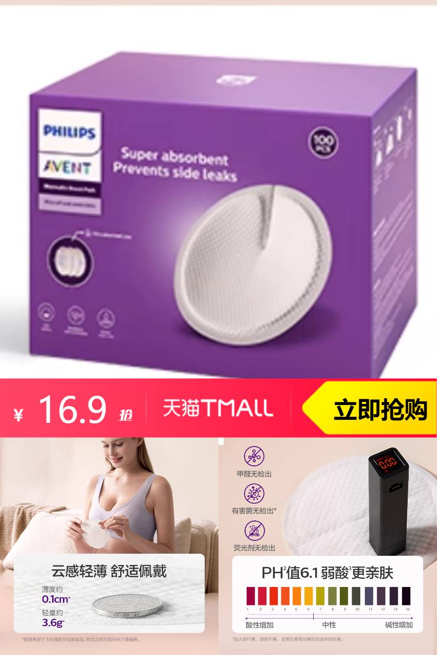 【淘金币1.59,到手15.31】飞利浦新安怡防溢乳垫一次性棉透气50片,溢乳更瞬吸新体验日夜呵护防渗漏~