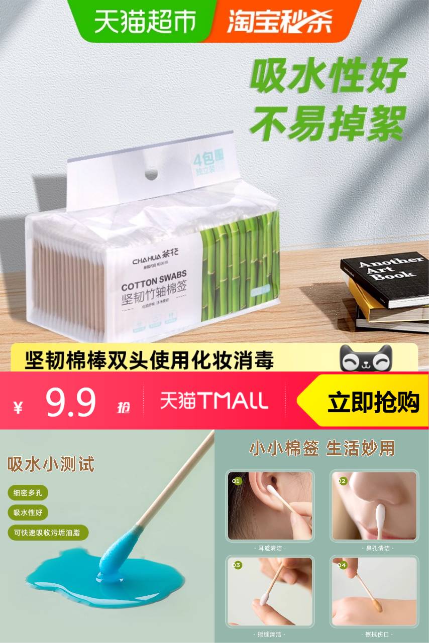【88vip0.5,淘金币0.57,猫超品牌立减2,到手7左右】茶花一次性双头棉签800只装,安心好“棉,柔软亲肤,棉头选用脱脂棉,柔韧纤长无荧光杂质,使用更放心。