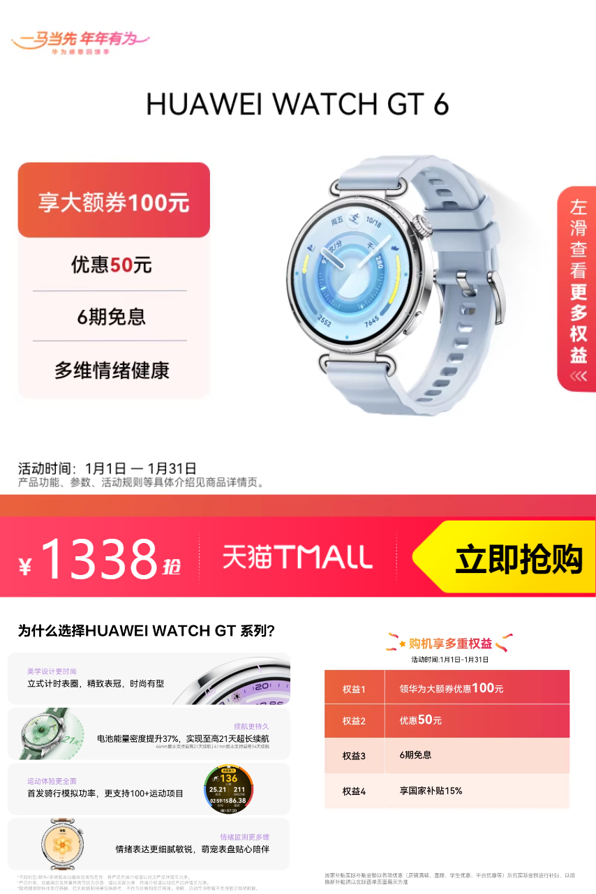 【1488-商品券100-立减优惠50-37.5淘金币-国补15%=1105.42,6期免息,支持以旧换新】智能监测全天候健康管理,你的健康守护者。精准运动计步每一步的活力,尽在掌控。续航强大长久待机,不再因电量而错过精彩时刻。