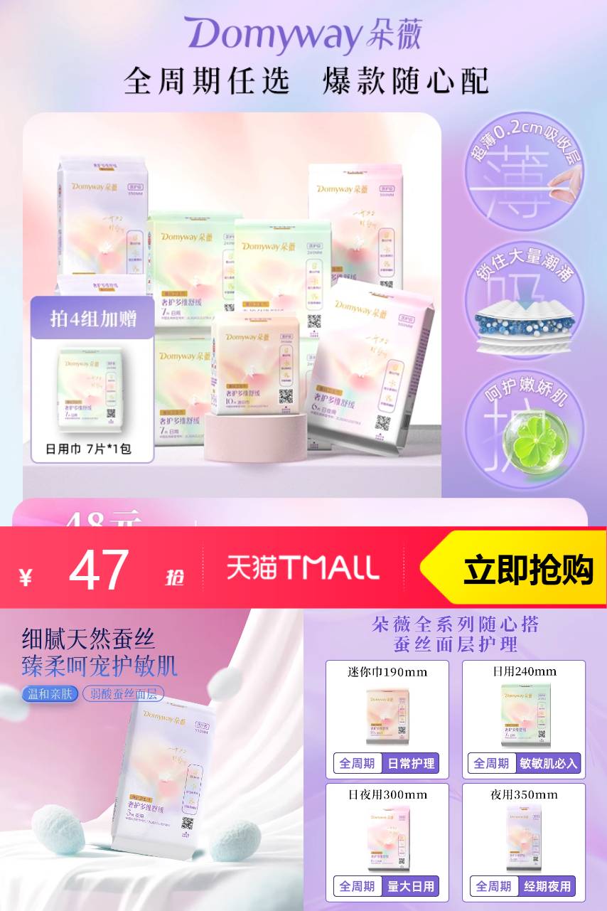 【原价85,领券立减38,限时补贴3.76,淘金币抵扣2.55,到手仅需40.69】拍4到手9包!朵薇黄子韬卫生巾姨妈巾,黄子韬朵薇卫生巾姐妹们!? 我们的卫生巾采用优秀材质,柔软亲肤,不刺激皮肤。每一片都精心设计,吸水力超强,快速吸收,让你的私处保持干爽舒适。
