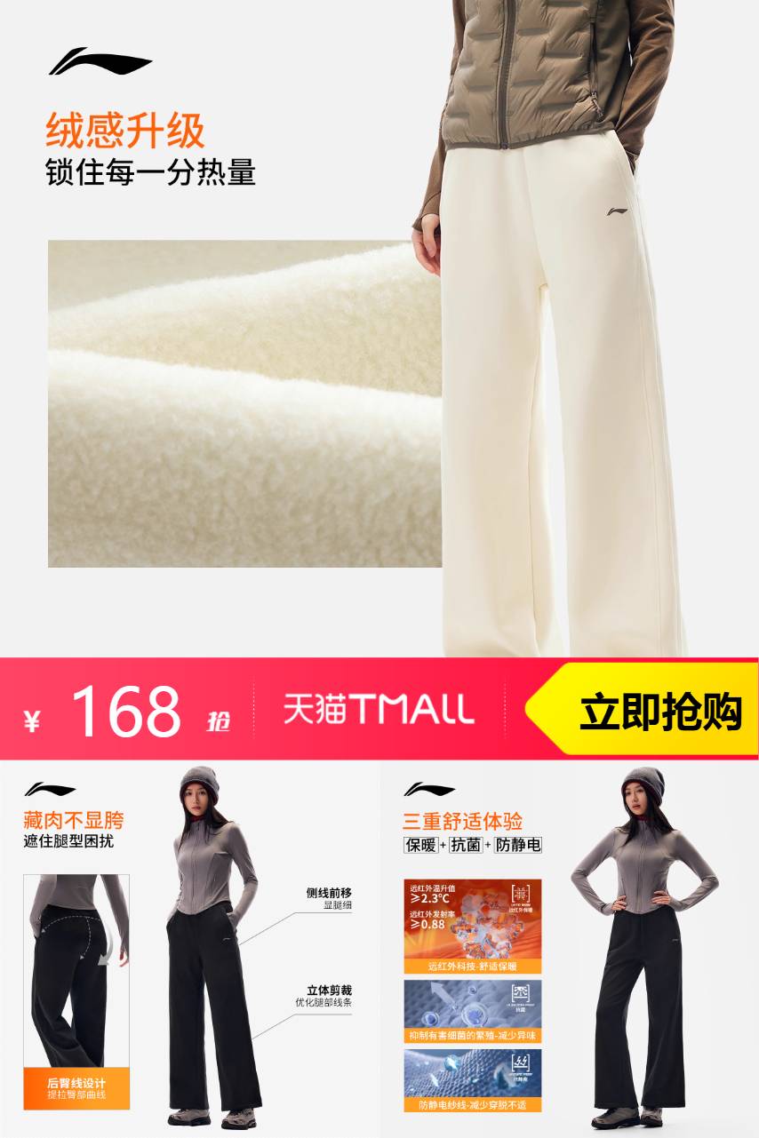 ⭕李宁奶芙裤 | 阔腿裤女直筒黑色裤
