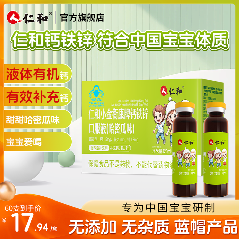 仁和金衡康钙铁锌口服液 34元减3.4 商品纠错