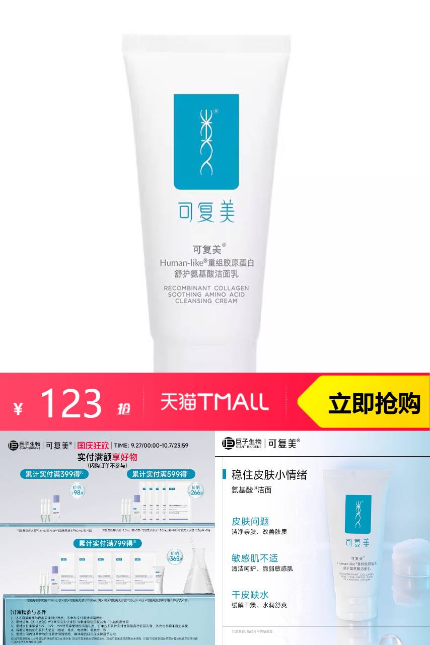 可复美 可复美重组胶原蛋白氨基酸洗面奶120g 1元减23 商品纠错