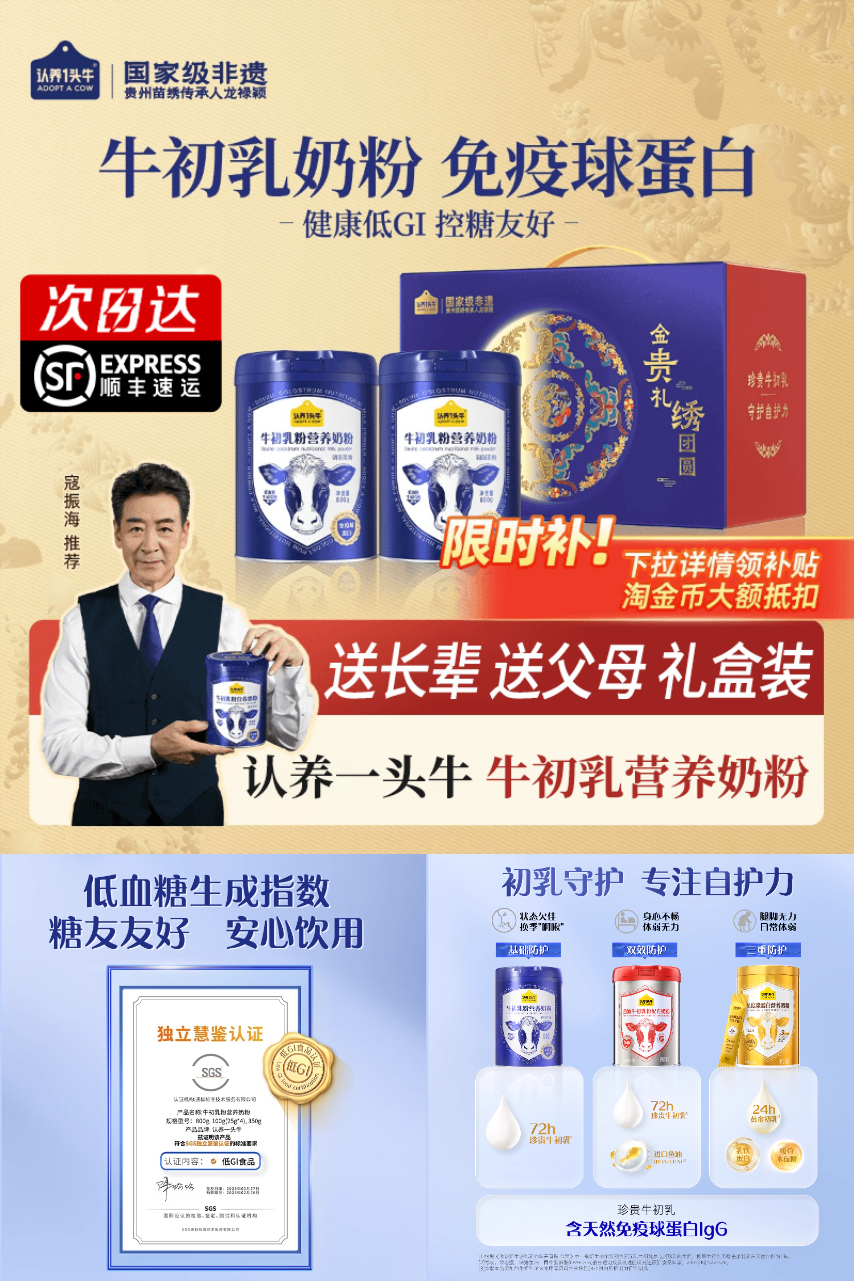 ⭕顺丰!认养一头牛牛初乳中老年营养奶粉礼盒