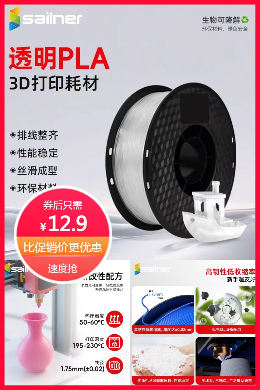 推荐:【可签到】sailner赛纳透明3d打印耗材