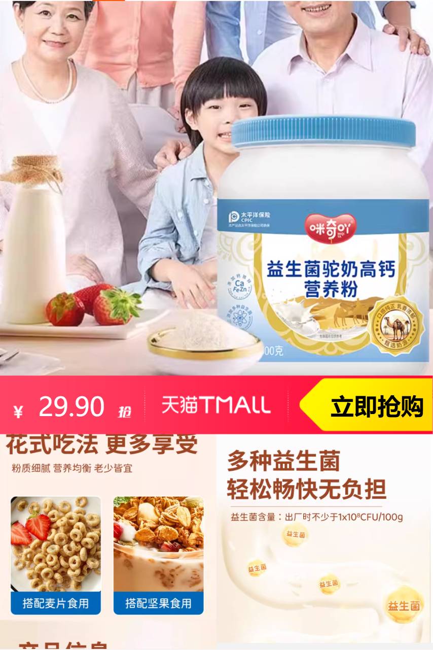 【淘金币2.39元到手27.51元】拍一发二儿童益生菌驼奶粉中老年全脂驼乳粉成人高钙营养燕麦粉,粉质细腻营养均衡老少皆宜~