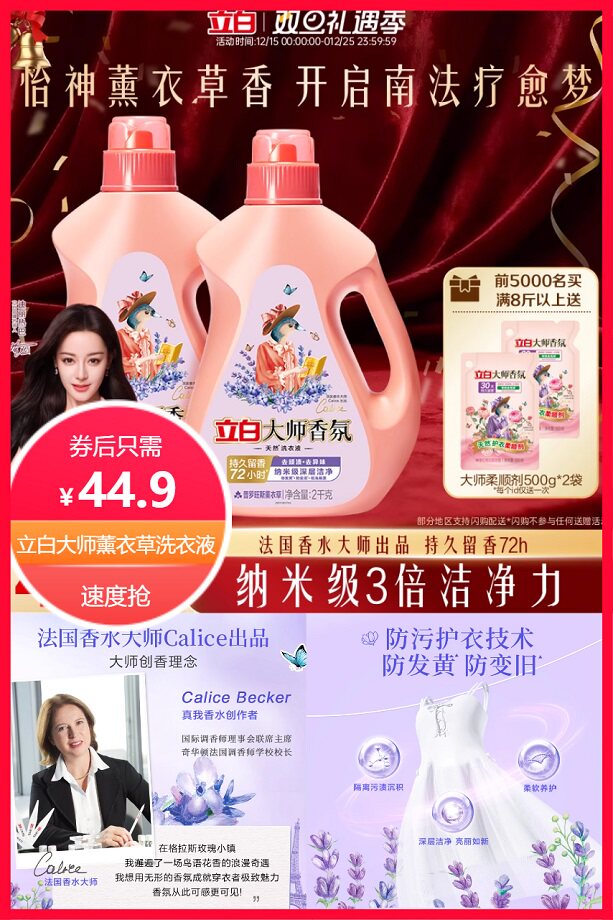 前5千名买6斤送大师柔顺剂100g*10袋,官方立减9.7元+券10元+88vip省2.25元+淘金币1.93元+回购礼金3元后约37.72元,消费券后33元更实惠!法国香水大师Calice出品!留香72小时,纳米护色科技,炫彩护色,衣服亮丽如新,天然酵素,深层洁净,柔软养护,护衣更护手~