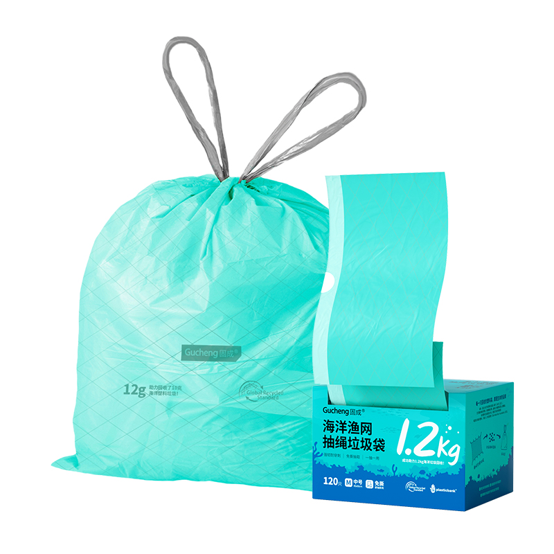 固成垃圾袋免撕抽绳自动收口家用大号加厚海洋渔网一次性环保厨房