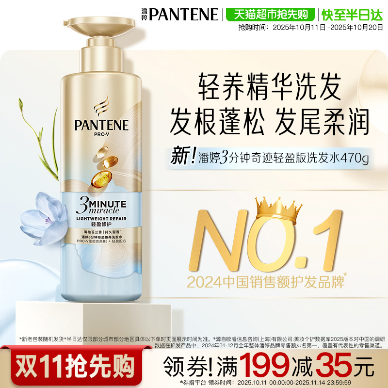 潘婷三分钟新品洗发水洗头膏470g 轻盈修护去油蓬松小苍兰