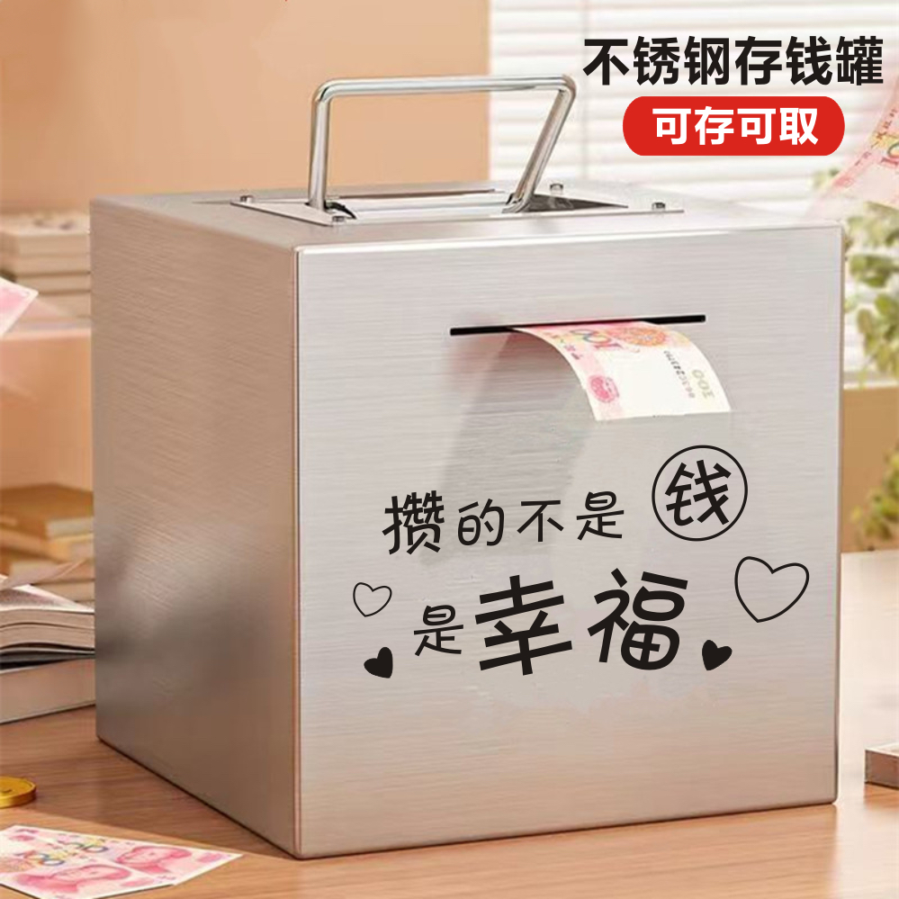 可存可取免砸不锈钢手提存钱罐2025新款大号超大超厚储钱礼物