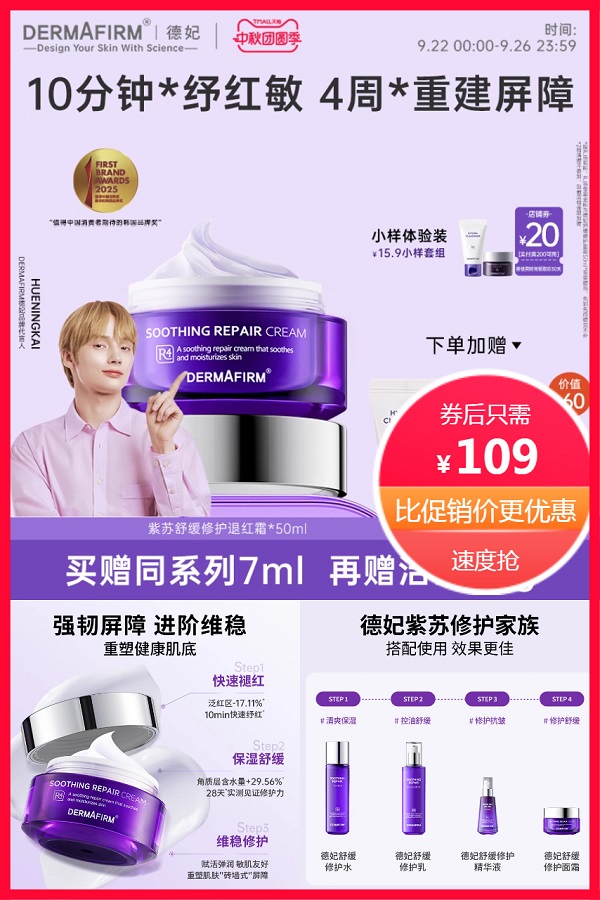 【买就送紫隔离5ml,洁面10g*2】德妃紫苏舒缓面霜50g,修护敏肌屏障,褪红焕活,多肽脂质体科技清爽不油腻~温和配方专为敏感肌设计,保湿修护一步到位!