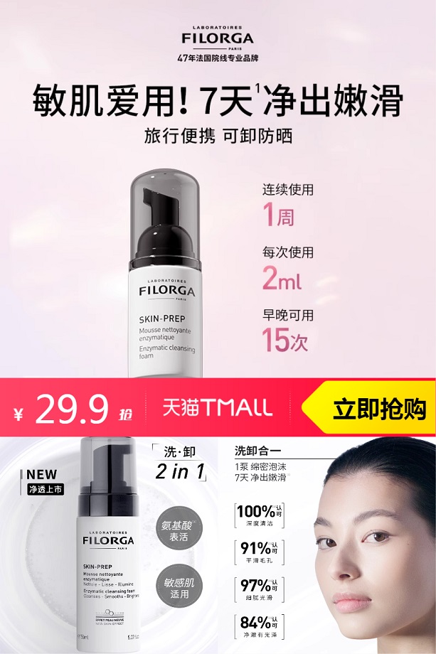 推荐:Filorga菲洛嘉净澈卸妆洁面慕斯30ml