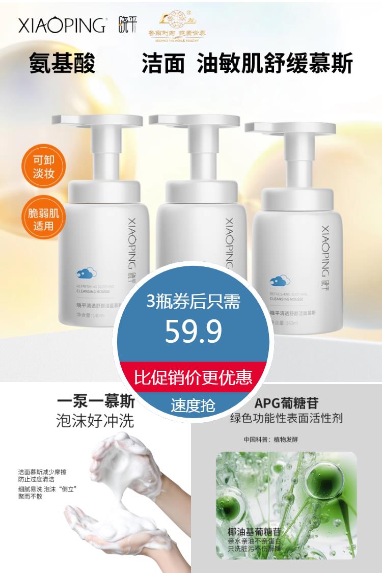 ⭕【140ml*3瓶】晓平清透舒颜洁面慕斯