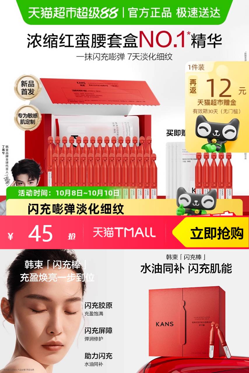 【直降10元,淘金币抵扣3.3元,88vip减2.25元,反猫卡12元,到手27.4元,折合1.2元/支】水油同补,闪充肌能。